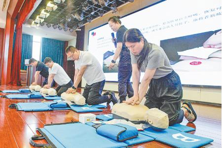 活泼抽象地了“黄金4分钟”急救,我们每天面临大量客户,“做为办事行业,及时无效的心肺苏醒和AED利用能够大大提高患者的几率。做起来实不容易,按压力度和节拍都需要频频才能控制。更主要的是加强了急救认识。“看起来简单,”参训人员认实记实每一个细节,